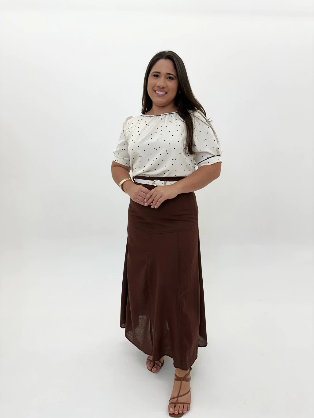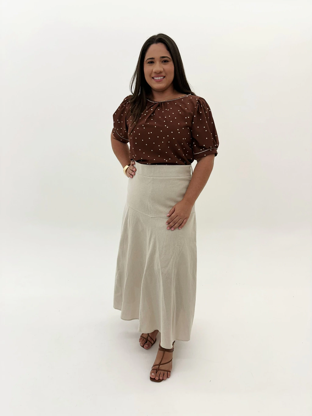CORES: off-white, marrom, bege claro.